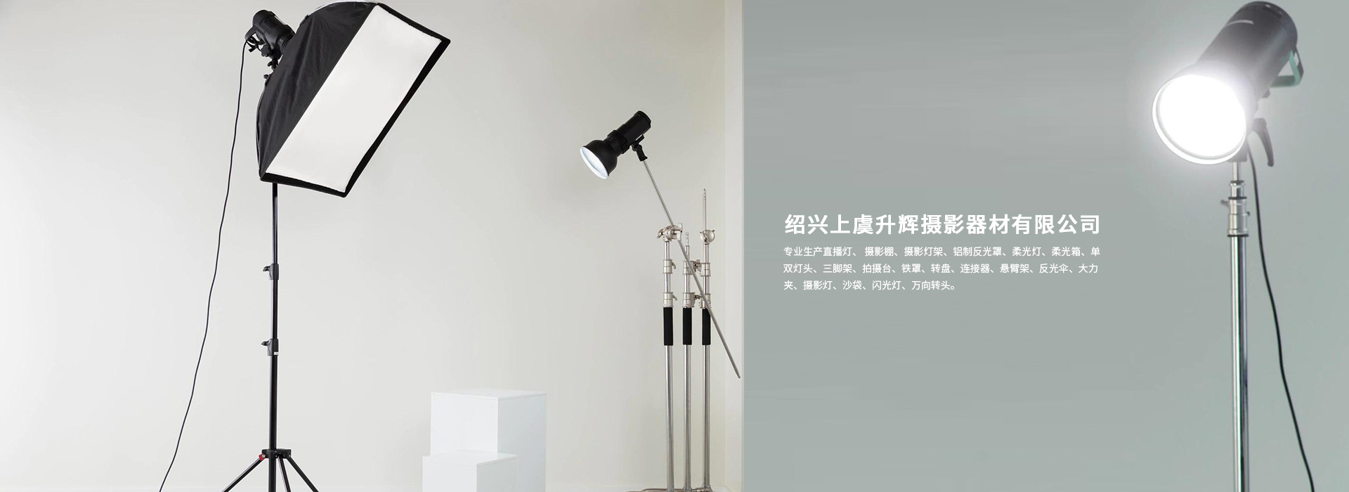 紹興上虞升輝攝影器材有限公司專業(yè)生產(chǎn)直播燈、 攝影棚、攝影燈架、鋁制反光罩、柔光燈、柔光箱、單雙燈頭、三腳架、拍攝臺、鐵罩、轉(zhuǎn)盤、連接器、懸臂架、反光傘、大力夾、攝影燈、沙袋、閃光燈、萬向轉(zhuǎn)頭。